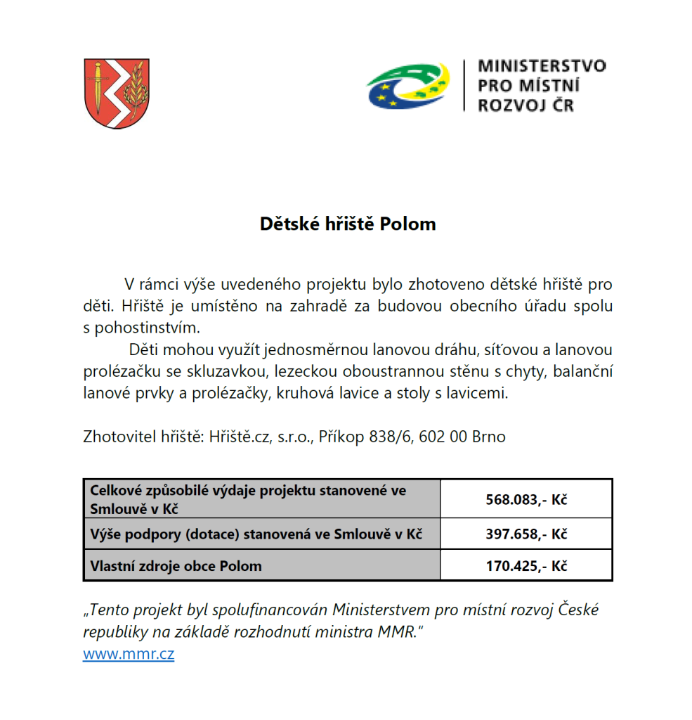 „Tento projekt byl spolufinancován Ministerstvem pro místní rozvoj České republiky na základě rozhodnutí ministra MMR.“