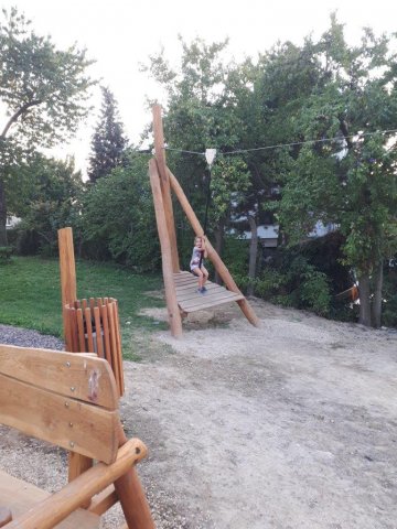 Děti mohou využít jednosměrnou lanovou dráhu, sítovou a lanovou prolézačku se skluzavkou, lezeckou oboustrannou stěnu s chyty, balanční lanové prvky a prolézačky, kruhová lavice a stoly s lavicemi.